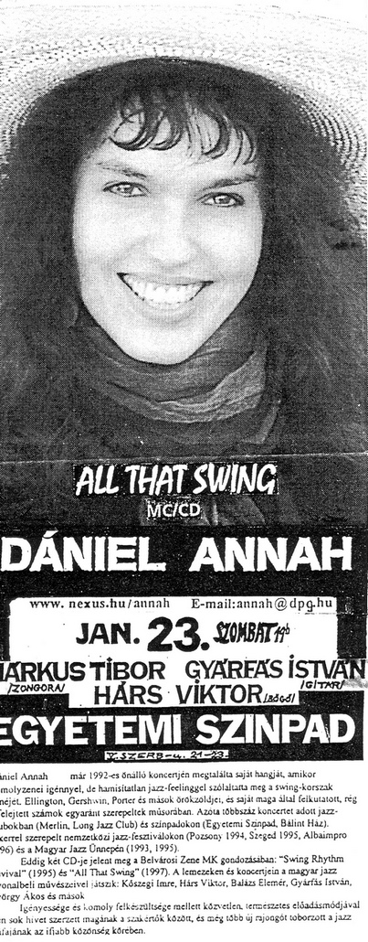 DánielAnnaH komolyzenei igénnyel, mégis hamisítatlan jazz-feelinggel szólaltatja meg a jazz-repertoár legszebb dalait a swing-korszaktól napjainkig.
